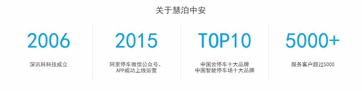 企業先后榮獲年度深圳建設創新產品獎、停車場類最受關注十大安防企業、中國云停車十大品牌、中國智能停車場十大品牌、2017中國城市無人化停車十大品牌、中國安防行業優質供應商、2016年最具投資價值項目50強等稱號。現為中國云停車產業聯盟理事單位、深圳市安全防范行業協會理事單位,深圳市智慧安防行業理事單位,微信支付認證服務商,國家高新技術企業。公司積極響應國家互朕網+戰略,成功開發出“阿里停車”智慧停車產業生態體系,涵蓋車場智慧停車,路邊占道停車,車e凈智能自助洗車服務,智能充電樁移動支付、云可視對講等服務。慧泊中安控股正以“研制一流產品,打造一流品牌,提供一流服務,創建百年偉業”為企業目標,努力打造成為一流的全球信息時代高科技領域的先鋒!為促進智慧城市,平安城市的發展貢獻力量。